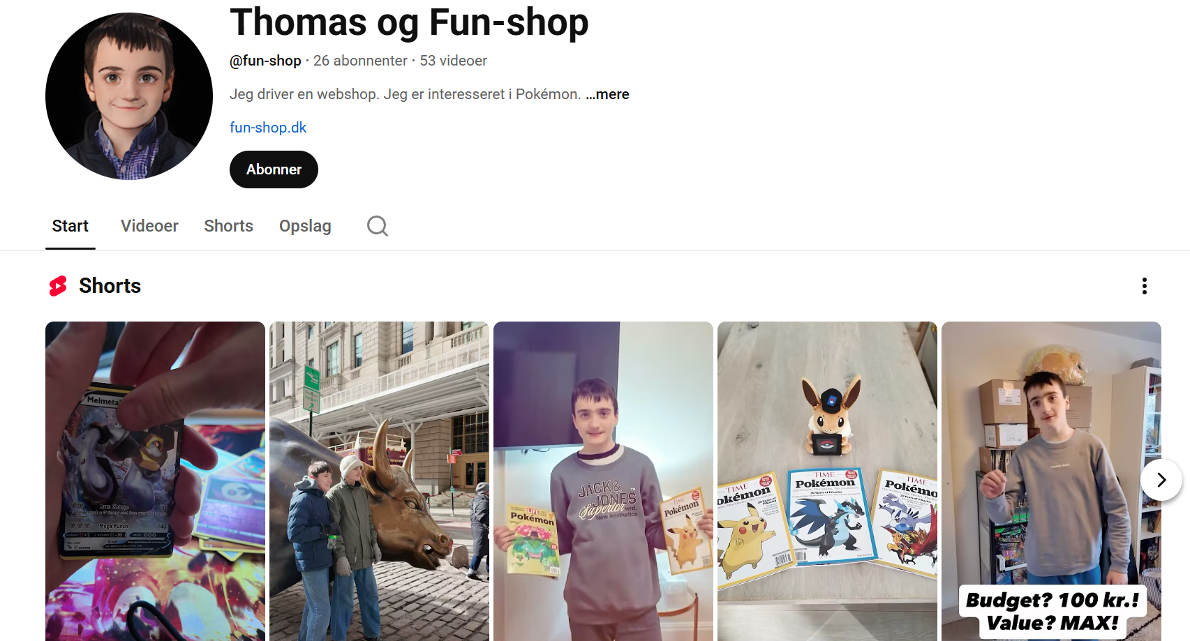 Thomas er en ung Pokémon samler der driver Fun-shop og har sin Facebook side "Thomas og Fun-shop", hvor han fortæller om sine oplevelser med on-line butiken. Thomas er ikke bange for udfoldninger som han møder i sin forretning. Han ser frem med optimismen og møder det når det kommer. Han er nemlig kun 10 år gammel og har masser muligheder foran sig!